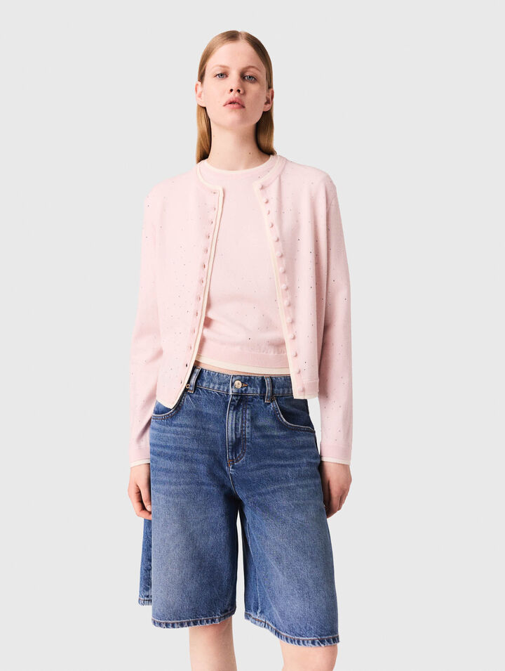 - Pull col rond en maille strassée